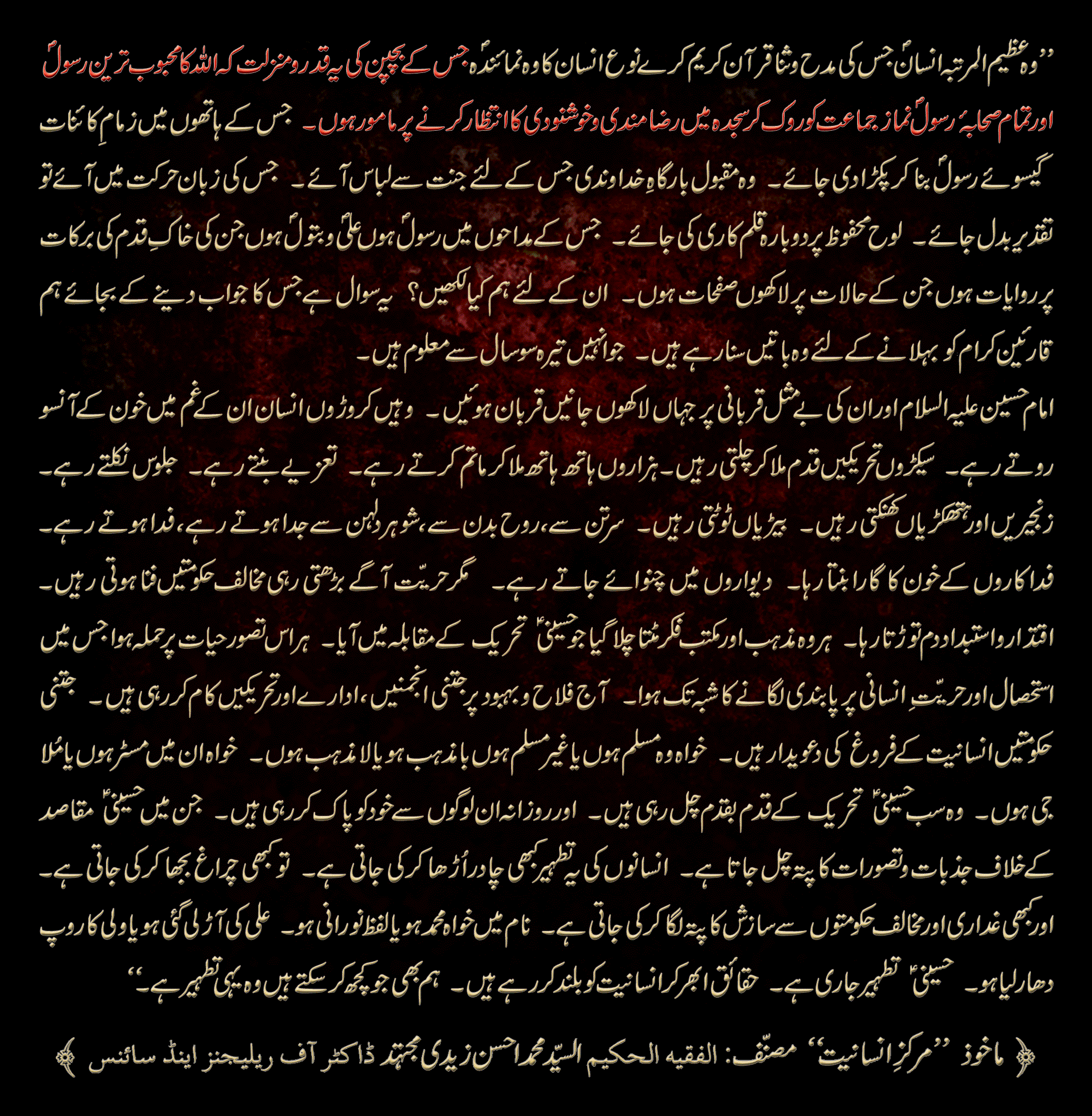 by:  Al-Faqih Al-Hakeem S. Muhammad Ahsan Zaidi Mujtahid, Dr. of Religions and Science